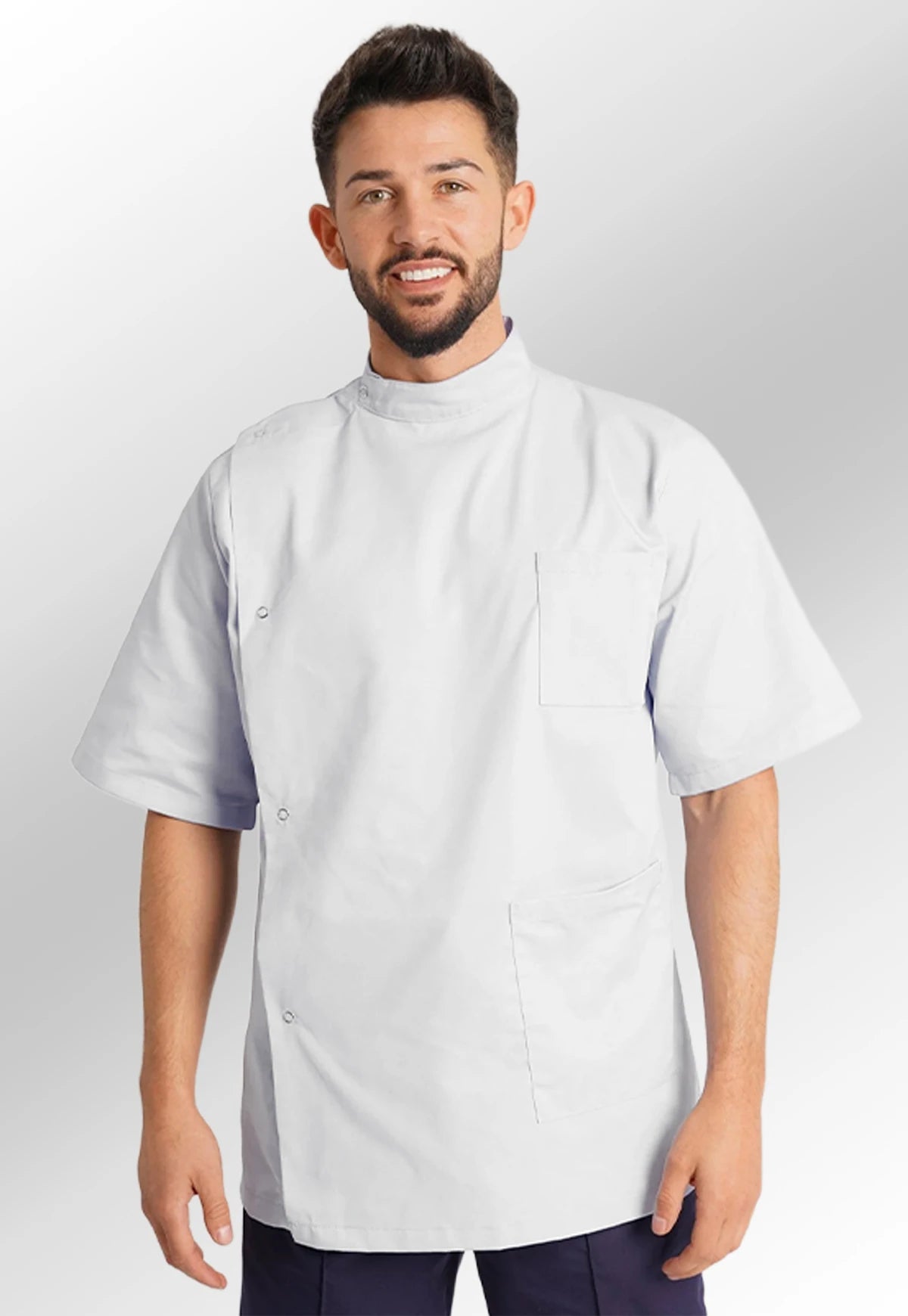 One left breast pocket with a waterproof lining, one lower left hip pocket, studded front side fastening, mock back belt, action back, and vents for comfort and ease of movement are all included in this Men's Dental Healthcare Tunic NDMT, ideal for general dentists, orthodontists, hygienists and more.