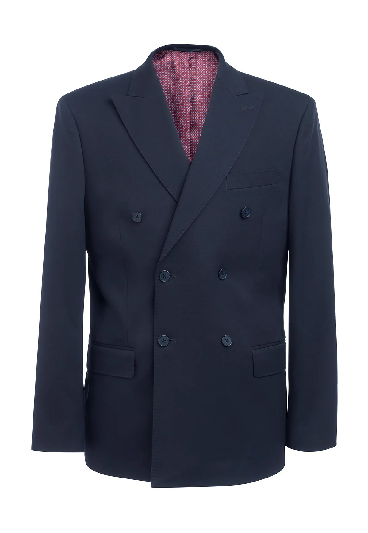 - Design Features: 6 button front, 2 jetted pockets with flap, 3 internal jetted pockets, 2 front darts, twin rear vents