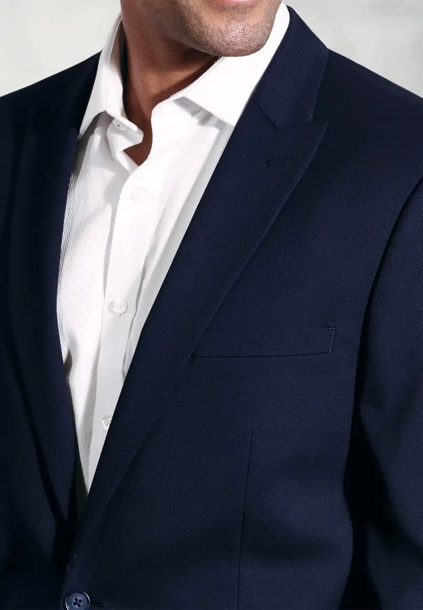 Designed with both style and function in mind, this suit jacket for men features a peaked lapel, a single-button, and twin rear vents to facilitate ease of movement. Its durable fabric and easy-care finish make it well suited for frequent use in uniformed environments.