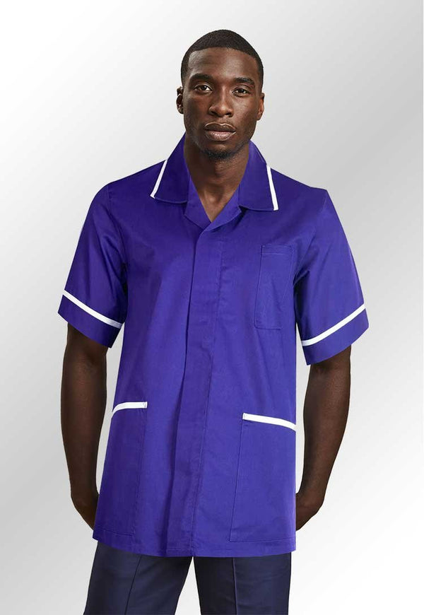 Available in a range of colours such as White, Sky Blue, Hospital Blue, Royal Blue, and Navy, and in sizes from 32″ to 54″, it accommodates different preferences and physiques. Whether used in hospitals, clinics, or care homes, this men's healthcare tunic combines robust workwear quality, breathable comfort, and professionalism.
