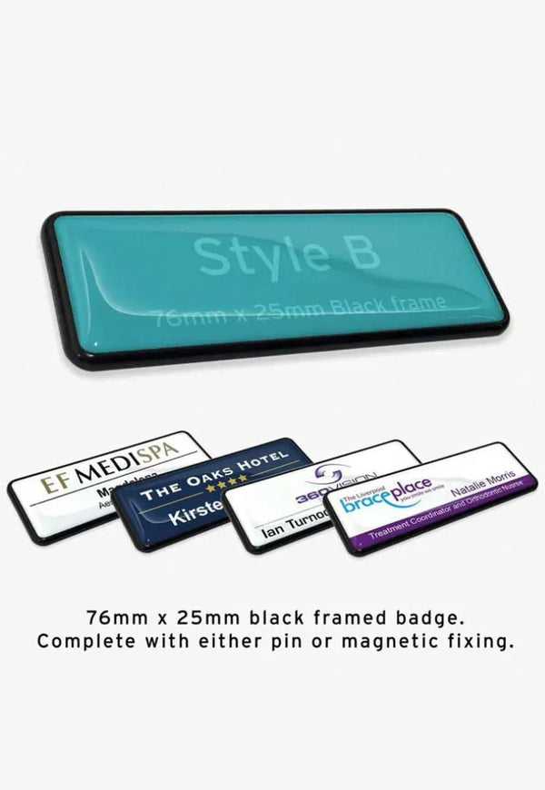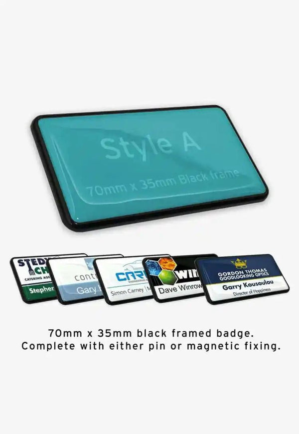 We offer a selection of name badges in a range of different sizes and styles for you to choose from.All badges are fully personalised at no extra cost and can include names, titles, your logo and company colours, etc.