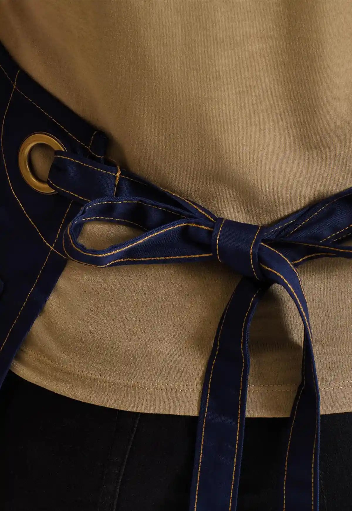 The centre zip pocket comes away to the underside to allow embroidery applications. Contrast stitching features across this apron and oversized antique brass eyelets give an industrial- chic feel to the design. Logo embroidery and printing available.