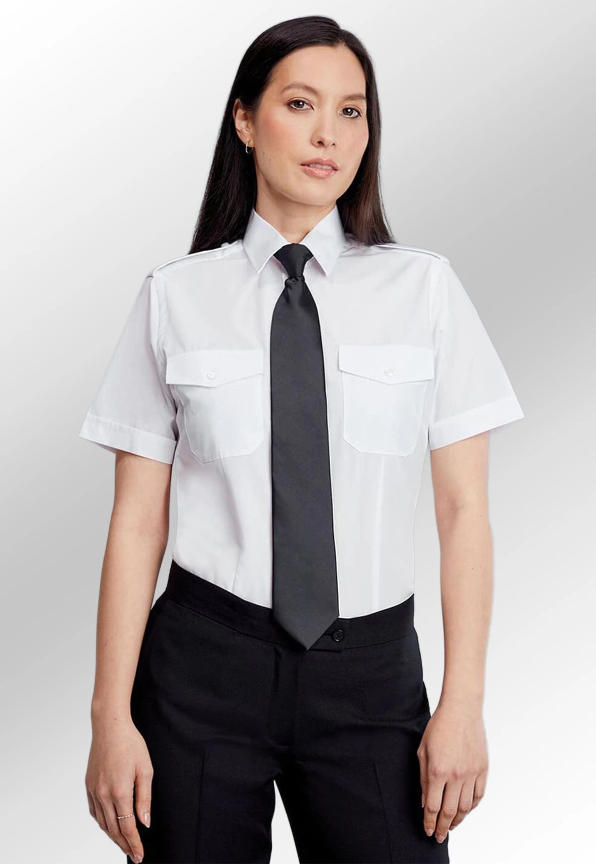 The Ladies Pilot Blouse by Disley combines practicality and feminine styling for your work wardrobe. Made from an easy-iron poly‑cotton blend, it feels soft yet maintains its crisp look all day. This women's work shirt is an ideal staple for the merchant navy uniform.